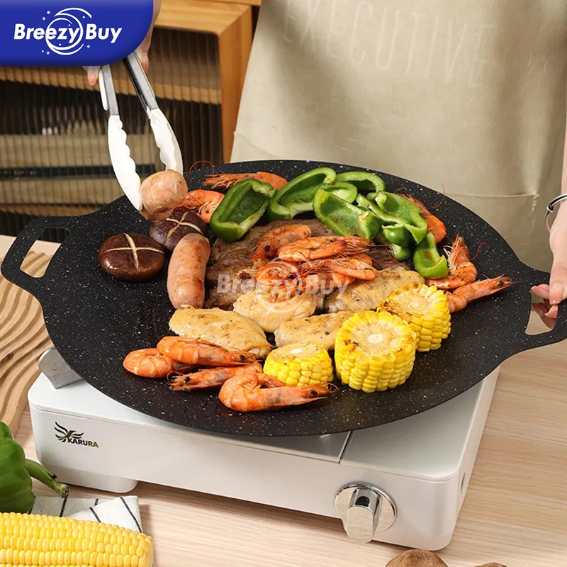 【】Wajan Anti Lengket Multi Grill Pan Anti Lengket Korean Grill Alat Pemanggang BBQ Serbaa Bundar