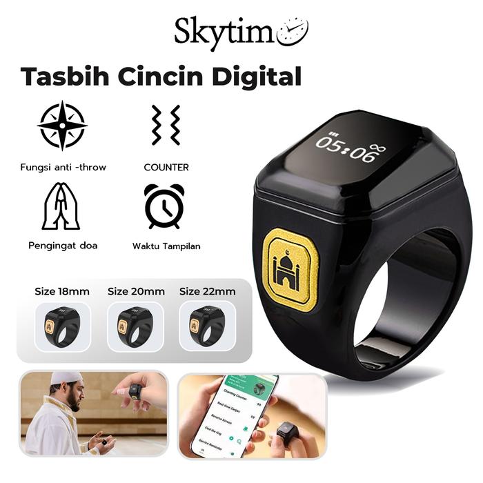 Skytime Cincin Tasbih Penghitung Doa Elektronik Sr01 Digital Smart Ring Led Display Bluetooth - Sr01-1 = 18Mm