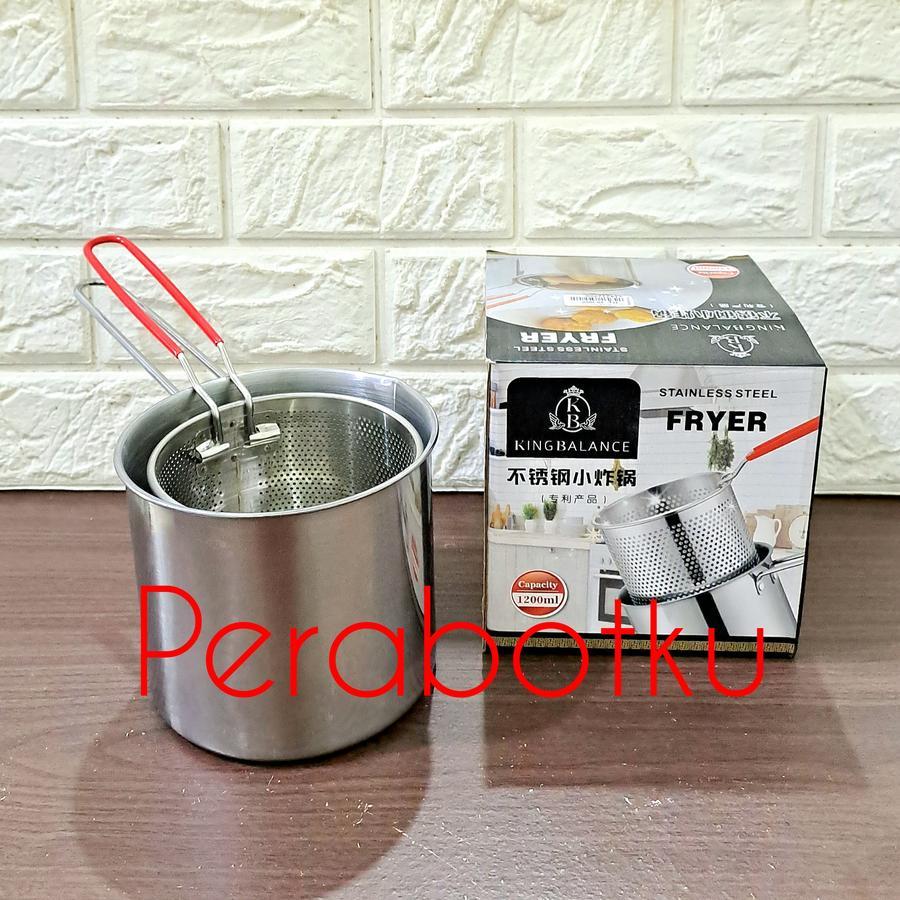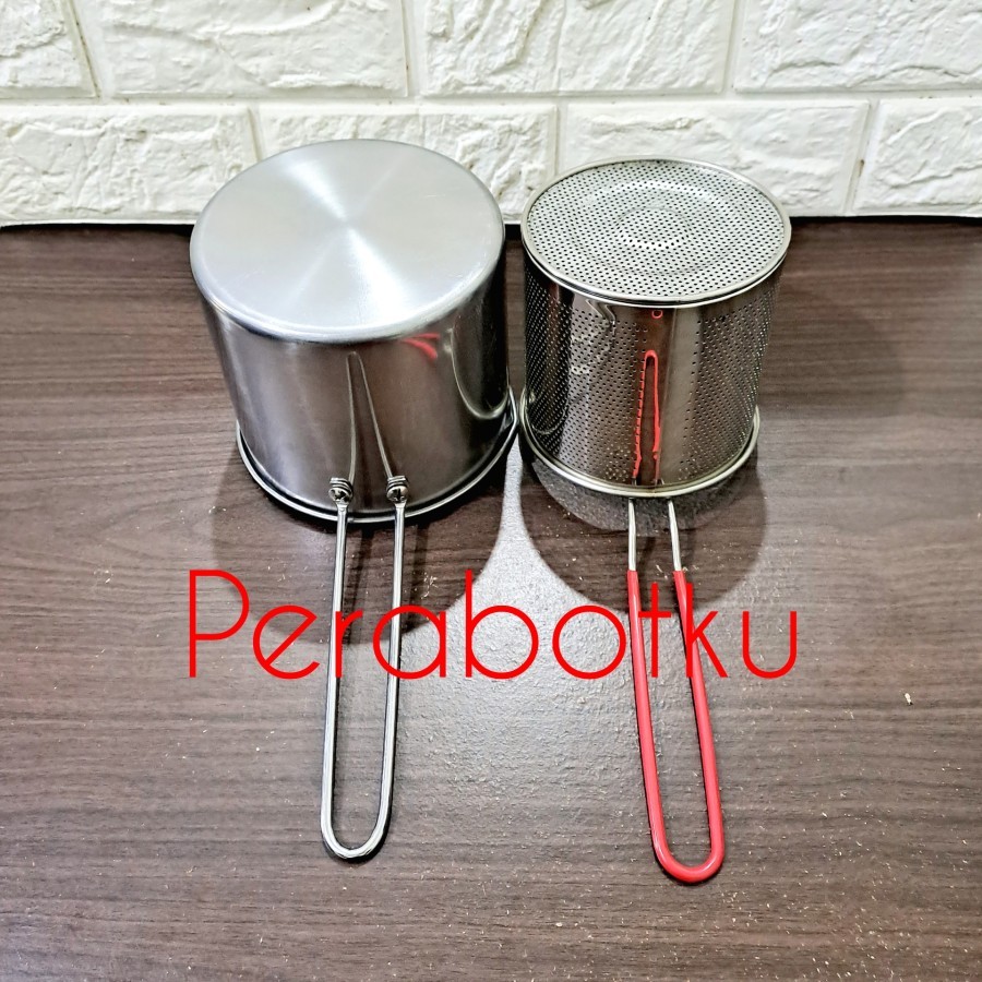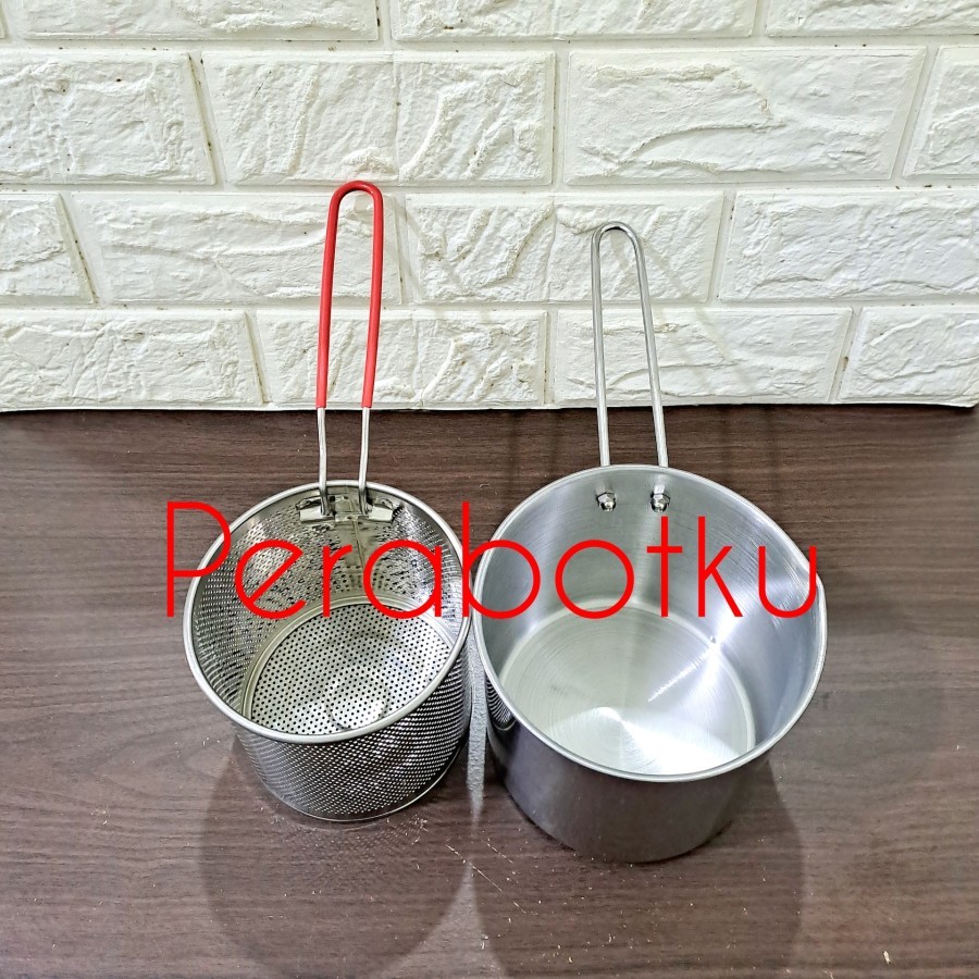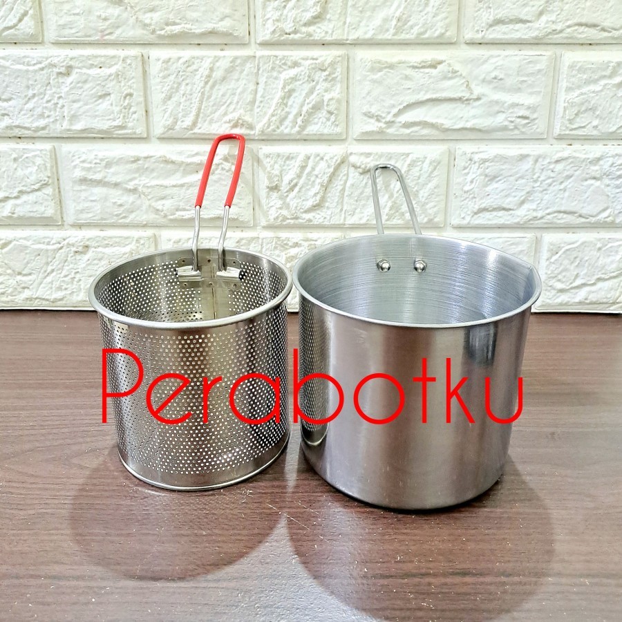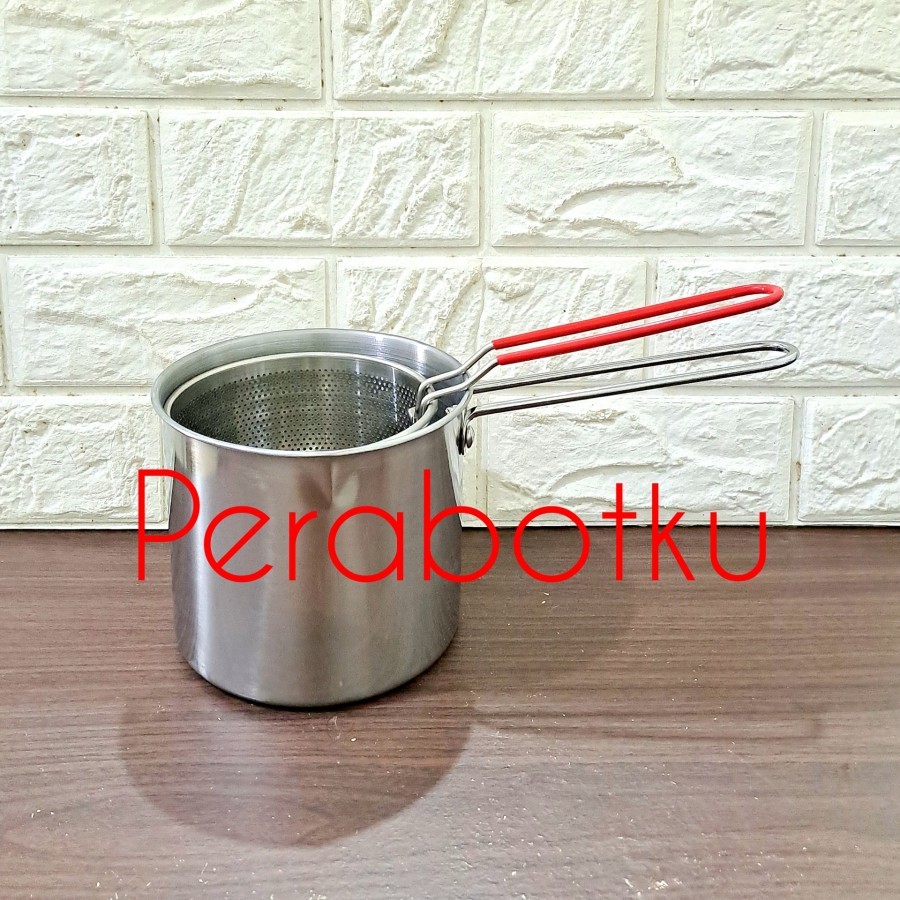 Panci Deep Fryer Mini Stenlis 2 in 1 515 / Penggorengan / Panci Mie + Serok Saringan Dalam Kecil Serbaa Multifungsi Stai