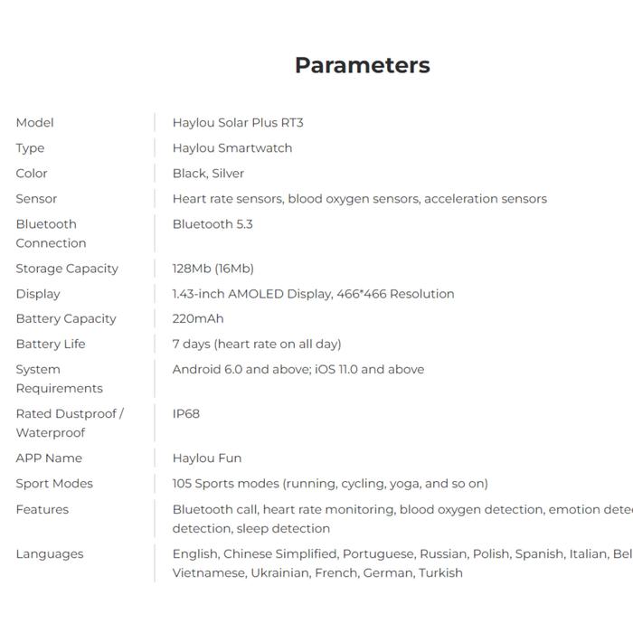 Haylou Solar Plus Rt3 1.43" Amoled 105 Sports Mode Ip68 - S1Lverr