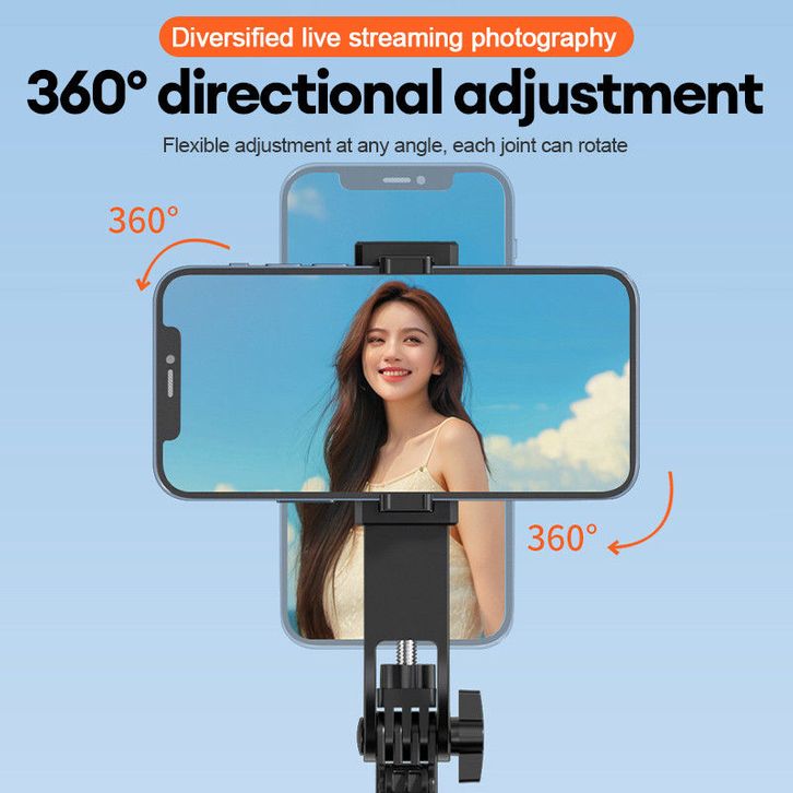 3in1 Tongsis Tripod Bluetooth 180cm dengan 4 Kaki Stabil Lampu LED Remote & Rotasi 360° Cocok untuk Selfie & Live &