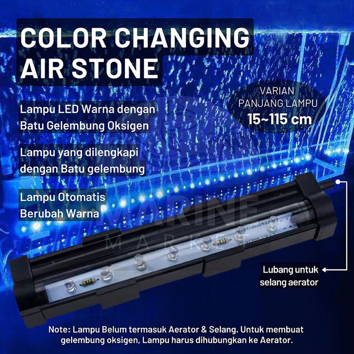 EKSKLUSIF Lampu Gelembung Oksigen LED Celup Batu 3 Warna Aerator Airstone Aquarium Airator Udara Akuarium