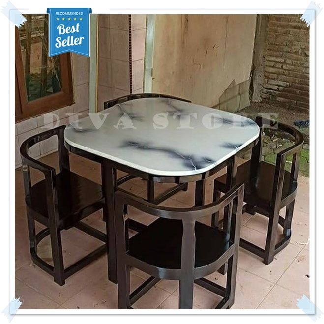 Set Meja Makan 4 Kursi Kayu Jati Natural