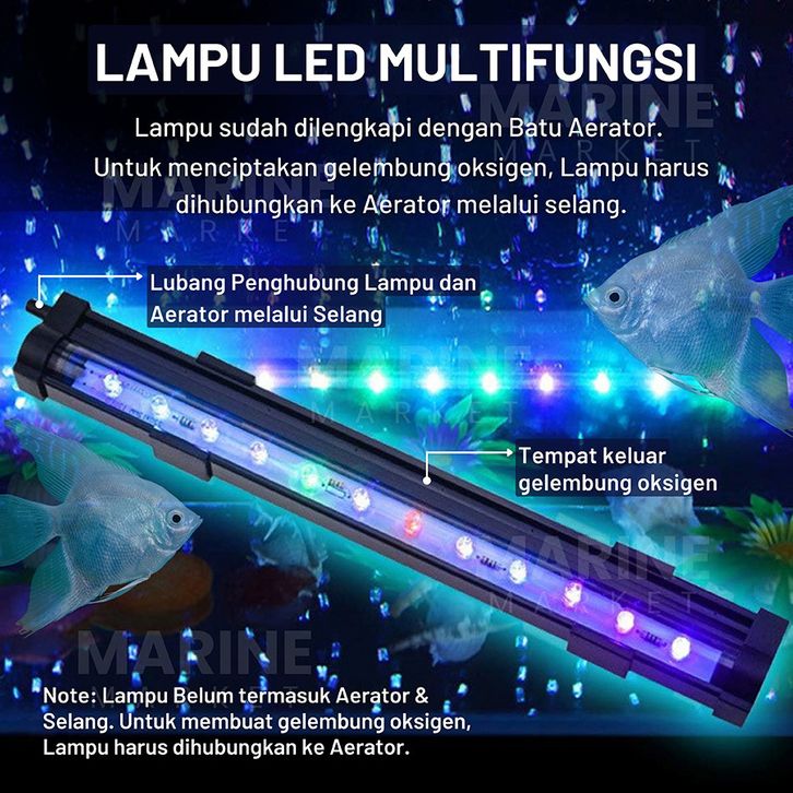 TERBARU Lampu Celup LED Batu Aerator Gelembung Airstone 3 Warna Warni Udara Airator Oksigen Aquarium Akuarium