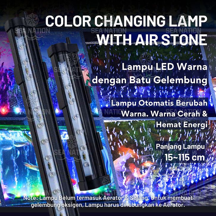 EKSKLUSIF Lampu Led Batu Gelembung Celup Aquarium Aerator Udara Airator Oksigen 3 Warna Air Stone Akuarium