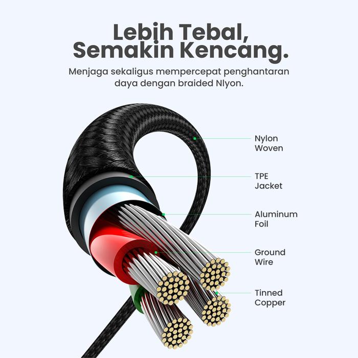 UGREEN Kabel Data Gaming USB Type C Fast Charging Samsung Android iPad Pro Air 100W 5A PD QC Fast Charger Braided Cable