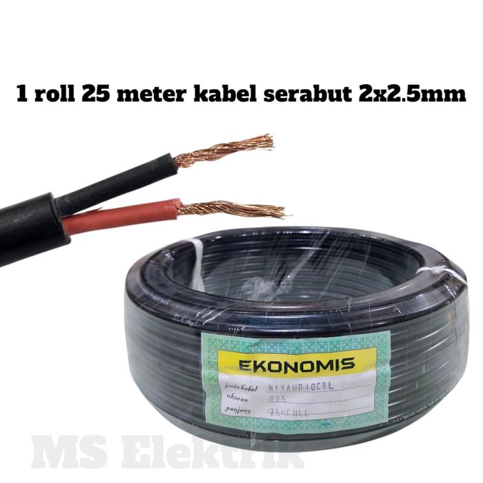 EKONOMIS Kabel Listrik Serabut 2X2.5mm 1 Roll 25 Meter Full Tembaga Berkualitas Tidak Mudah Putus
