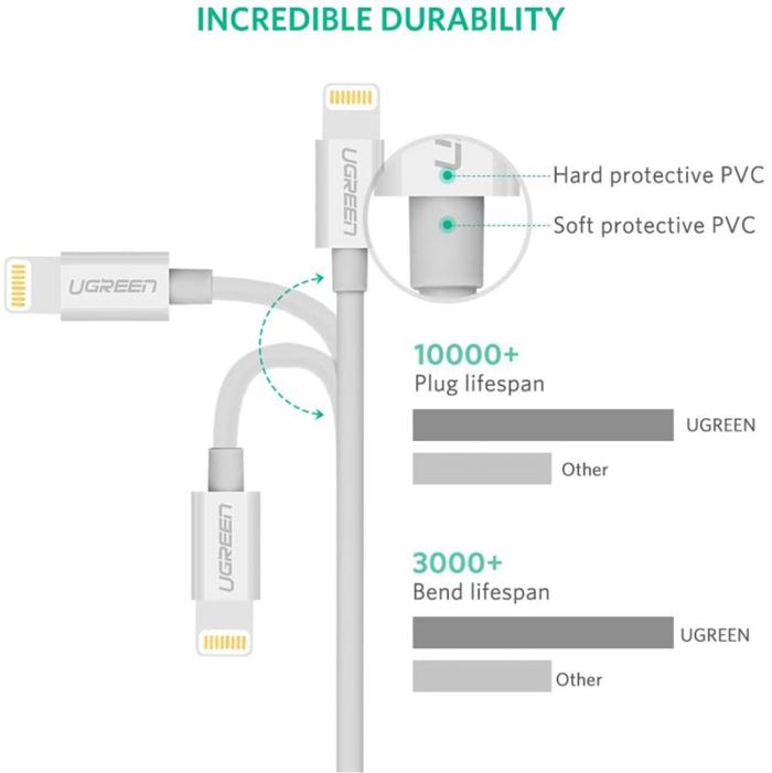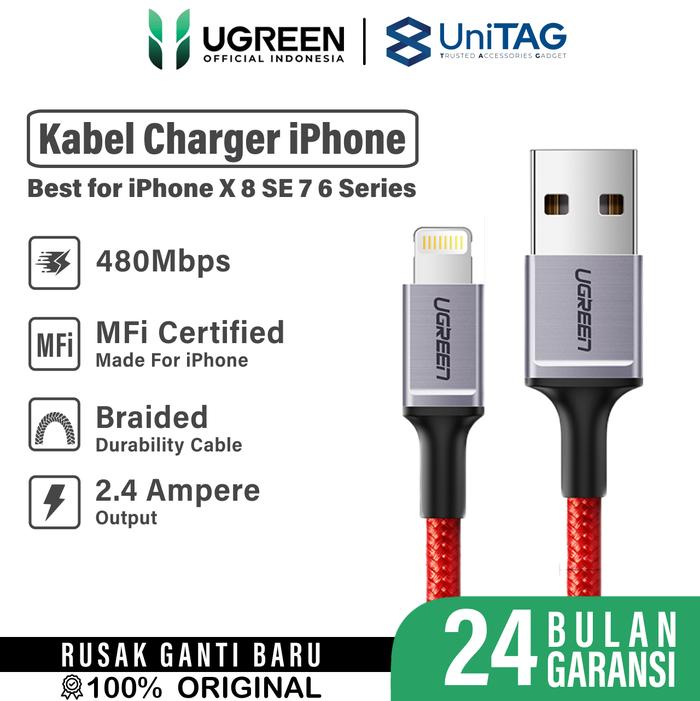UGREEN Kabel Data Fast Charging iPhone XR XS Max X 8 SE 7 6 Plus Charger USB to Lightning Cable MFi