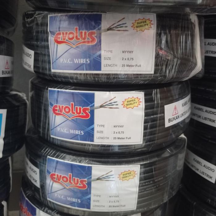 KABEL LISTRIK 25METER HYO 2X075 EVOLUS KABEL SERABUT KABEL AUDIO 2X075 / 25METER
