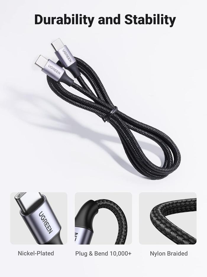 UGREEN Kabel Data Type C to Type C Nylon Braided Fast Charging Max 3A 60w For Samsung Android iPhone 15 iPad