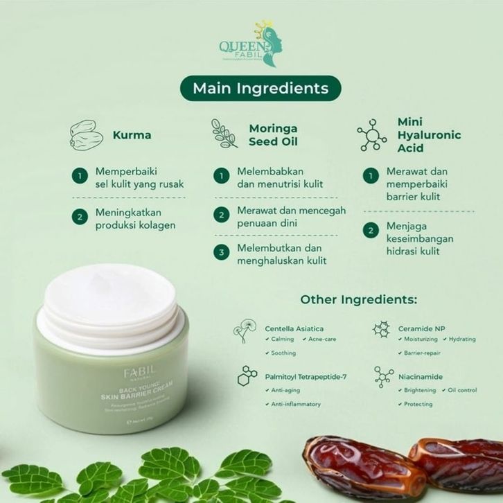 pelembab skinbarier Fabil Back Young Skin Barrier Cream - Pelembab dengan Kurma Dates dan Moringa Seed Oil - 7x Lebih A