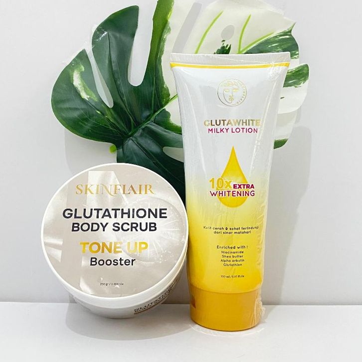 lotion tone up BUNDLING Skinflair Glutawhite Milky Lotion & Body Scrub Tone Up boo-ster