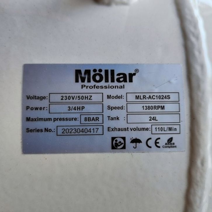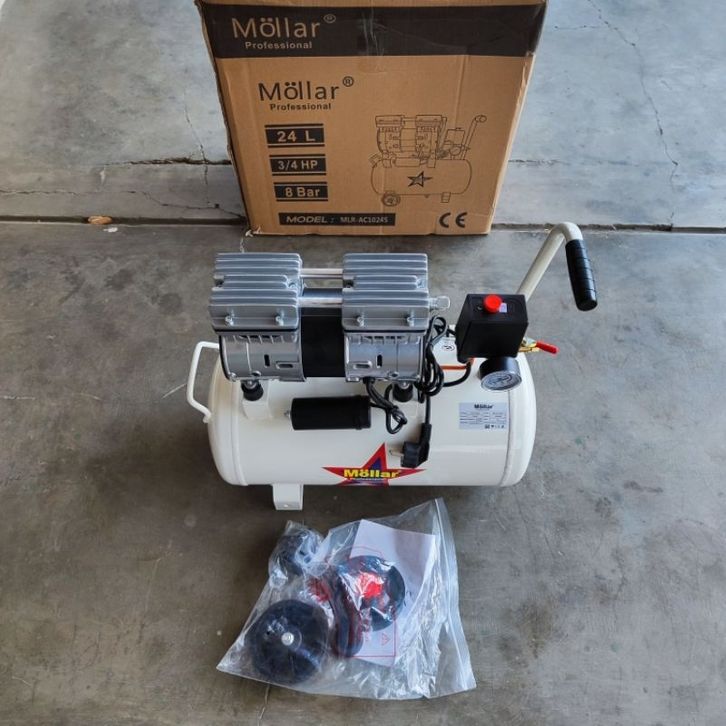 Mollar 0.75 3/4 HP 24 Liter Mesin Kompresor Oiless Silent 8 Bar AC-1024S