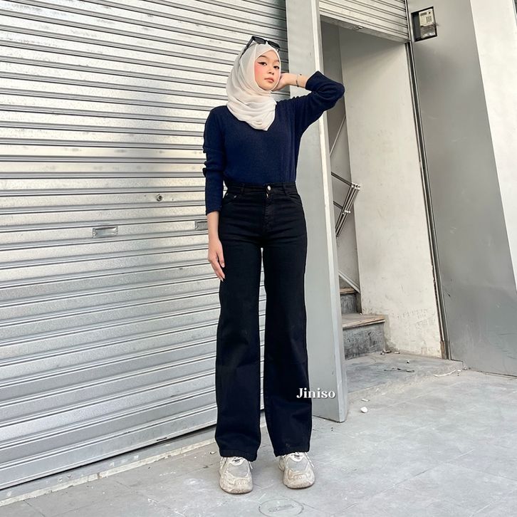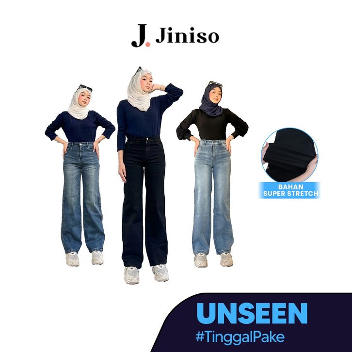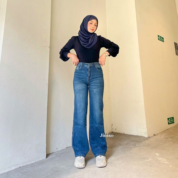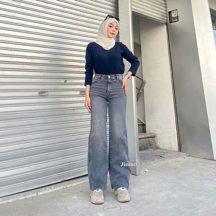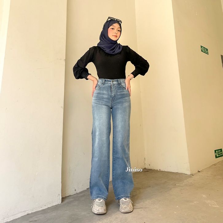 Celana Jeans Wanita Loose Highwaist Stretch Jiniso