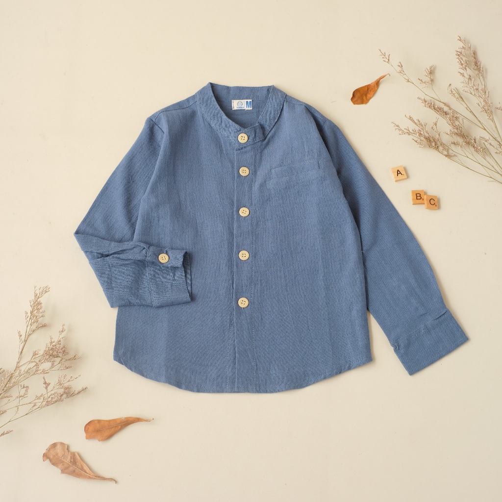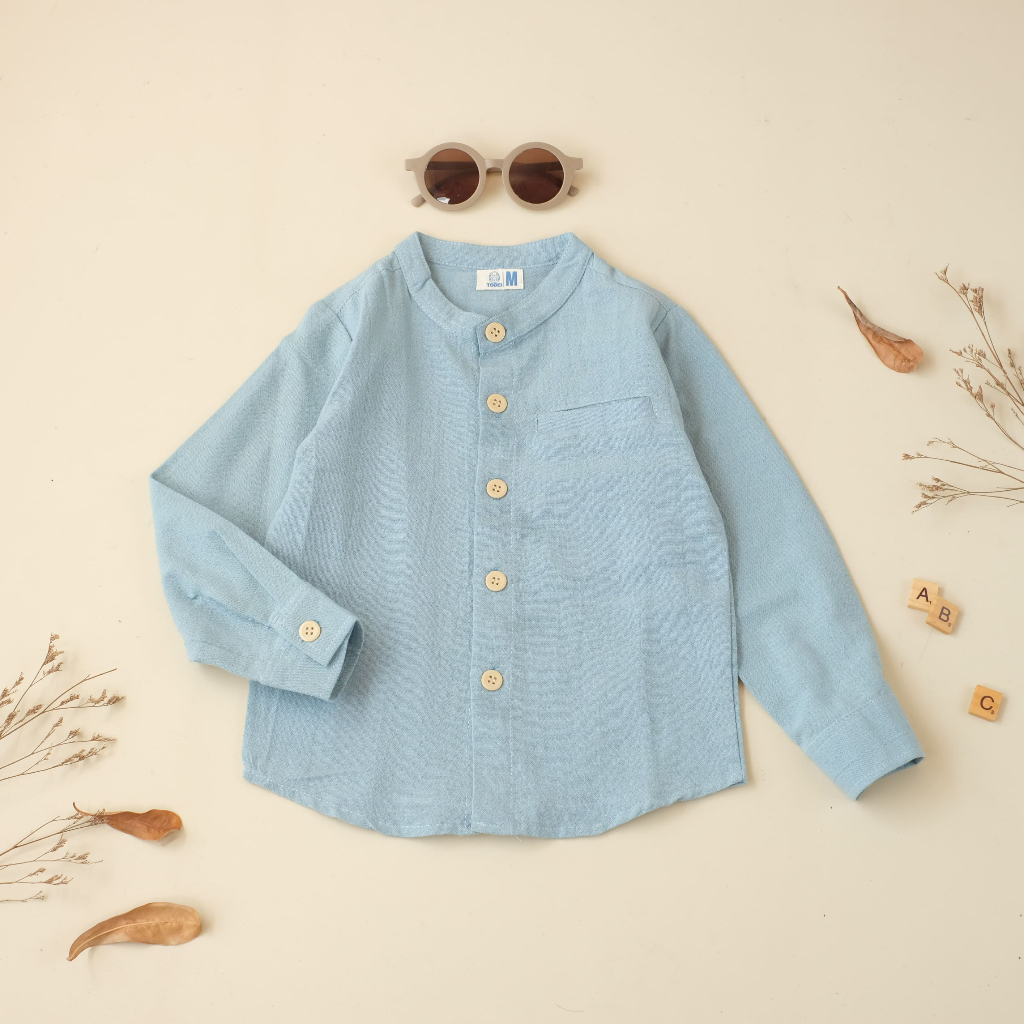 Todei.kids Kemeja Nara / Kemeja Atasan Lengan Panjang Anak Laki Laki Casual Linen Angel Premium 1 Sampai 6 Tahun / Baju