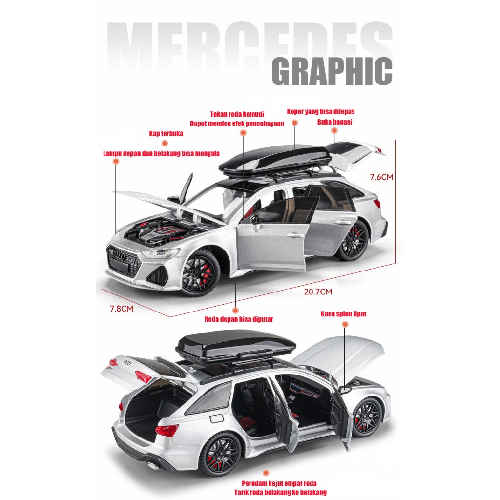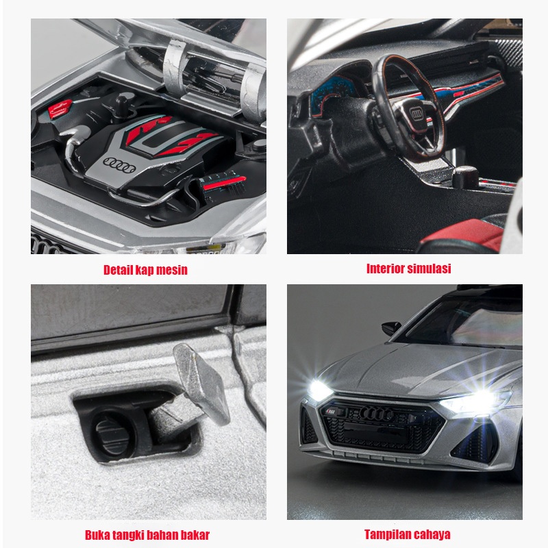 1:24 Audi RS6 Skala Audi Sedan RS6 Die cast Mobil Mainan Paduan Model Mobile