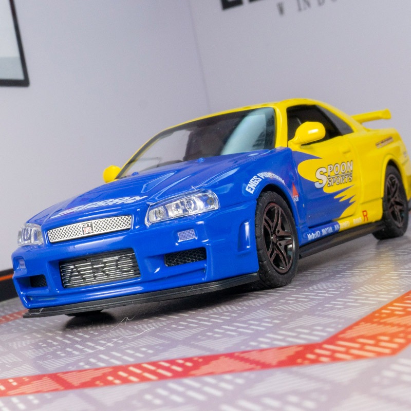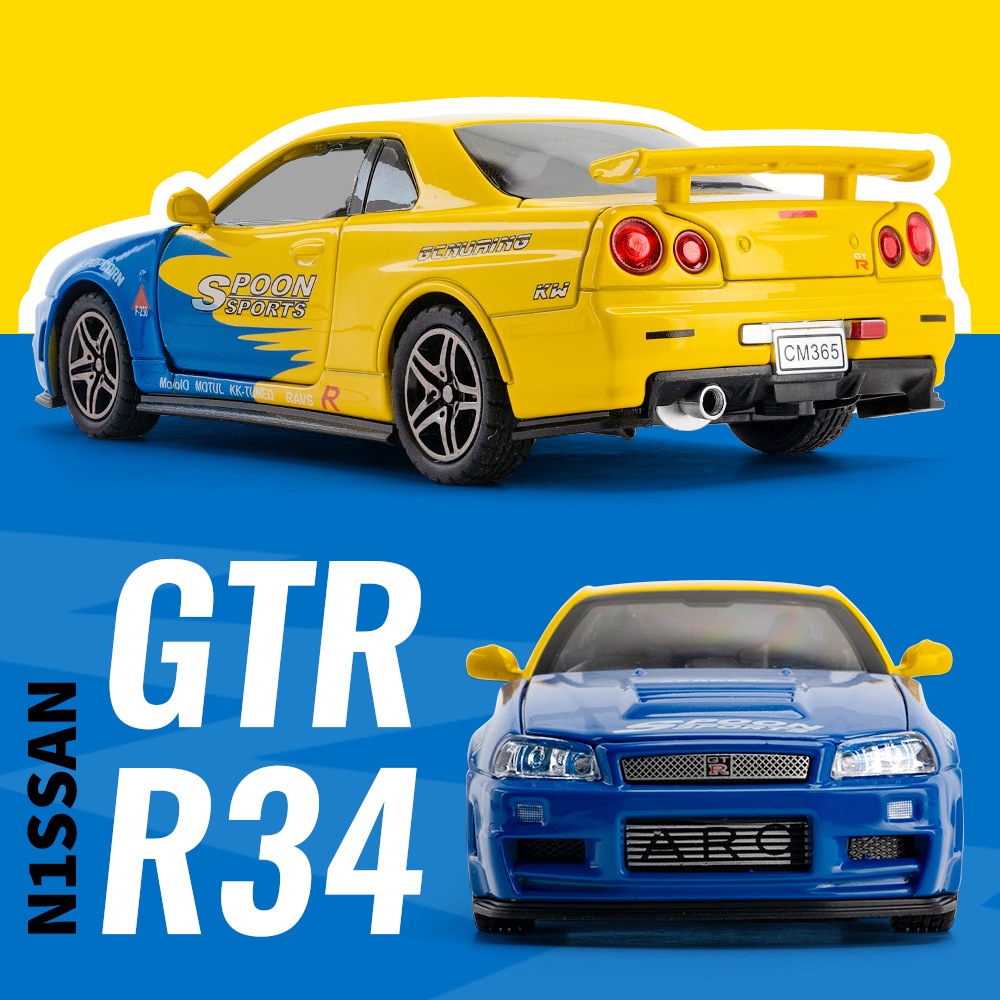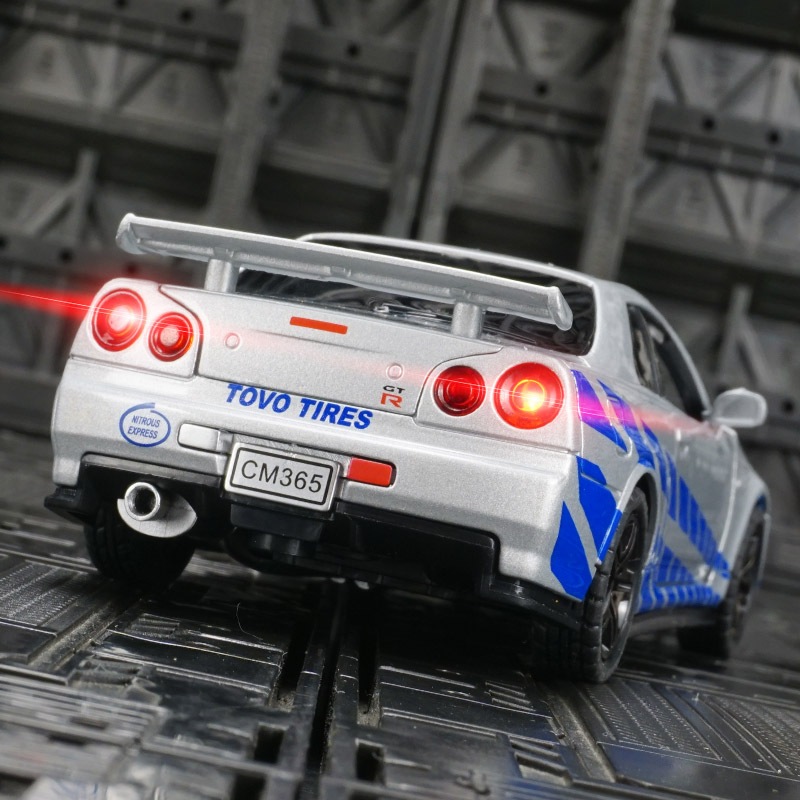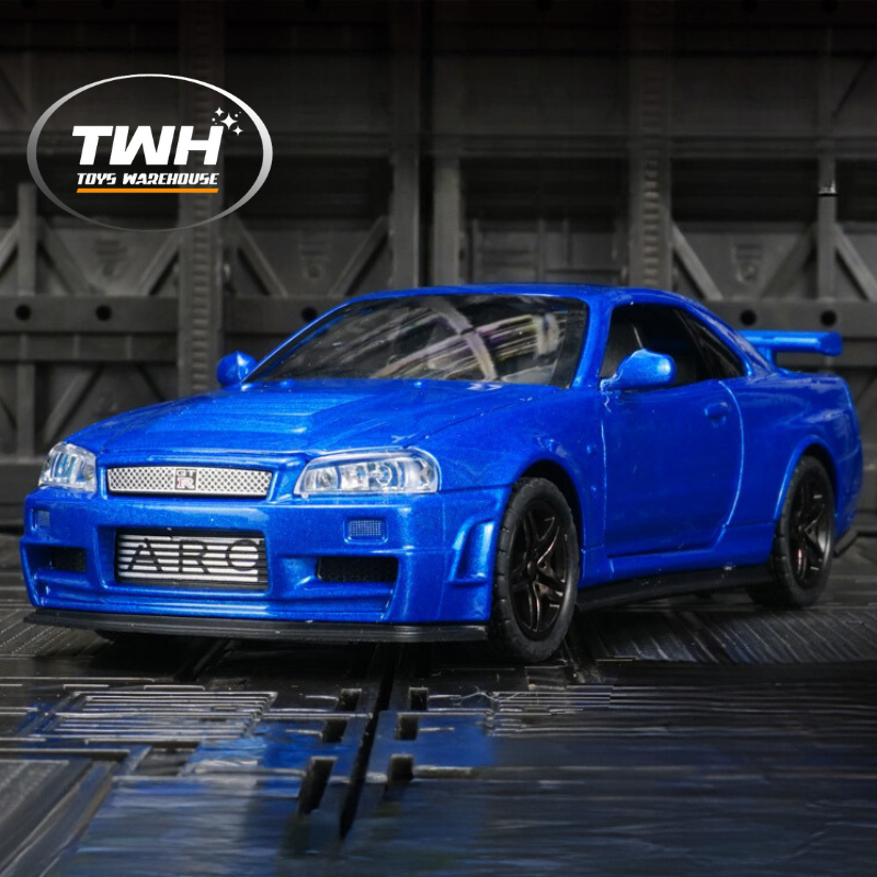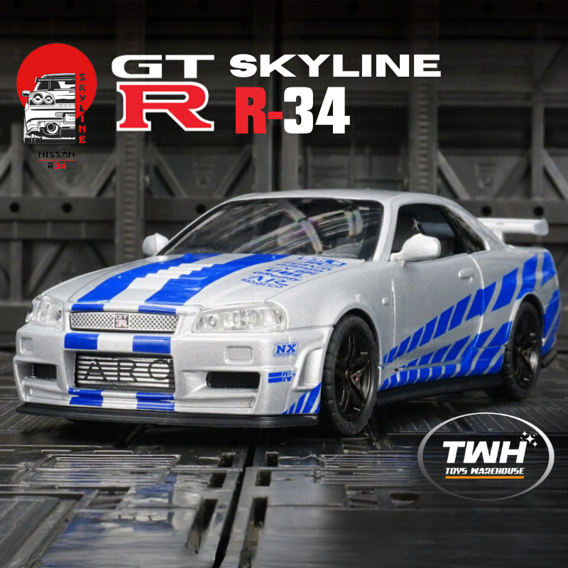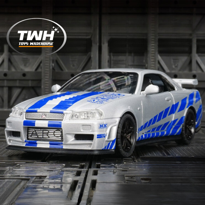 TWH NISSAN GTR R34 SKALA 1:32 2FAST 2FURIOUS MAINAN MOBIL DIECAST DENGAN SUARA & LAMPU KOLEKSI PREMIUM HADIAH