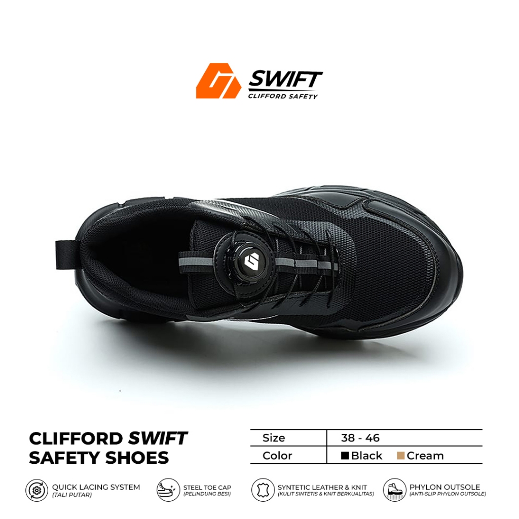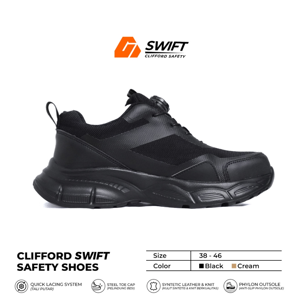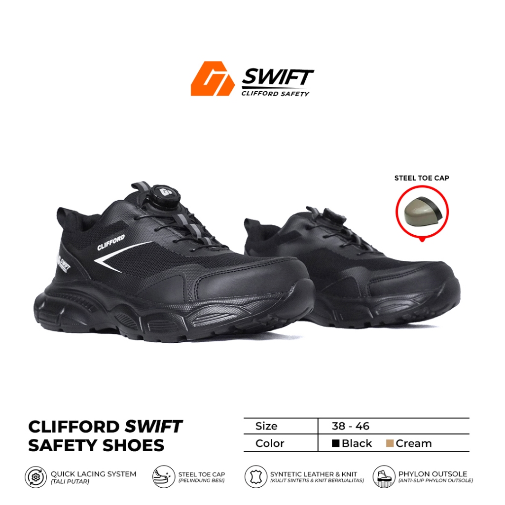 Sepatu Safety Pria Clifford Swift Safety Shoes Sepatu Sneakers Safety Ujung Besi Anti Paku Sepatu Kerja Lapangan