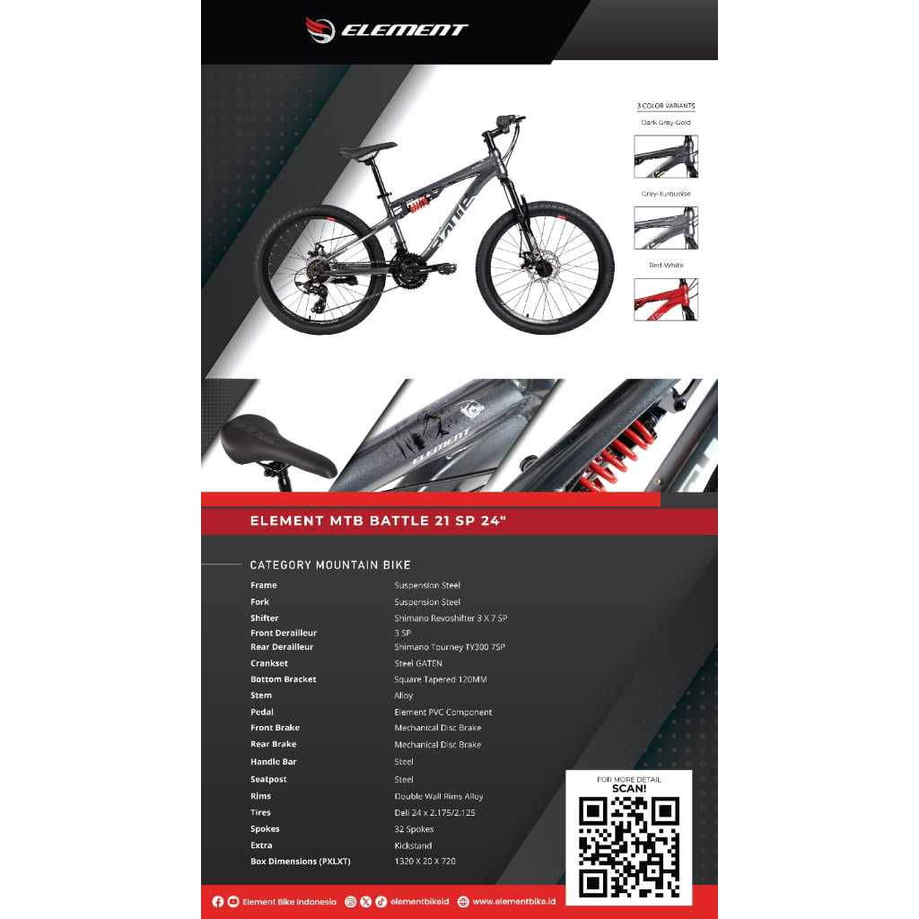 Sepeda Gunung 24" ELEMENT BATTLE MTB FULL SUSPENSION - disc brake