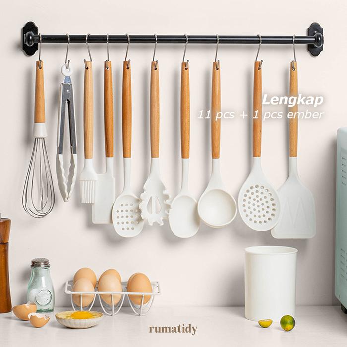 SILY Spatula Set 12pcs Alat Masak Silicone Sodet Steak Clip Set Oil Brush Kitchen Cooking Kayu Kitchenware