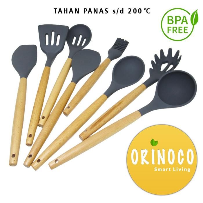 ALAT MASAK SET SILICONE OR-202 UNTENSILS SET (8 PCS + HOLDER) BPA FR