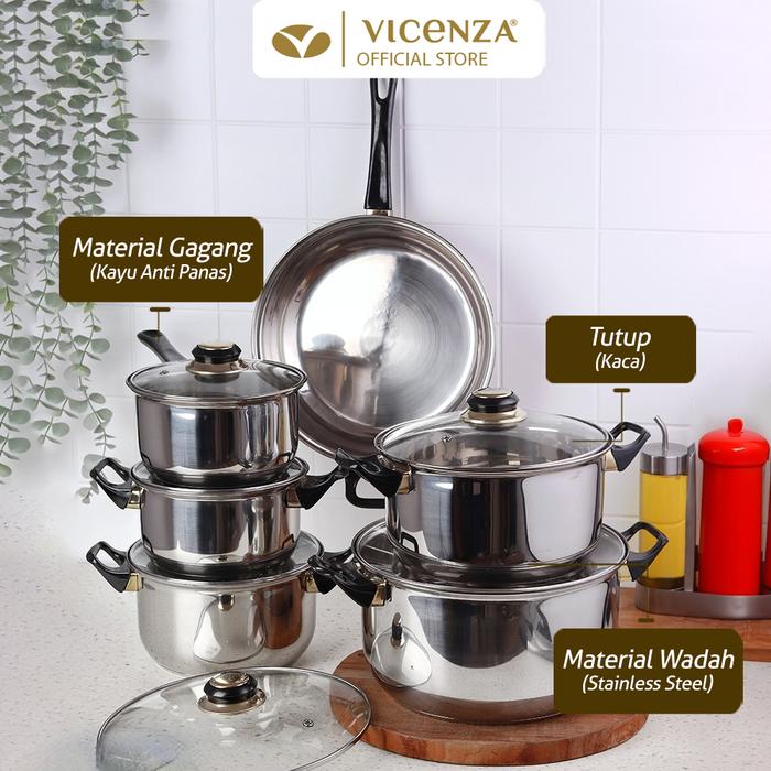 Vicenza Cookware Set Peralatan Masak Memasak Stainless Steel Panci Wajan V612