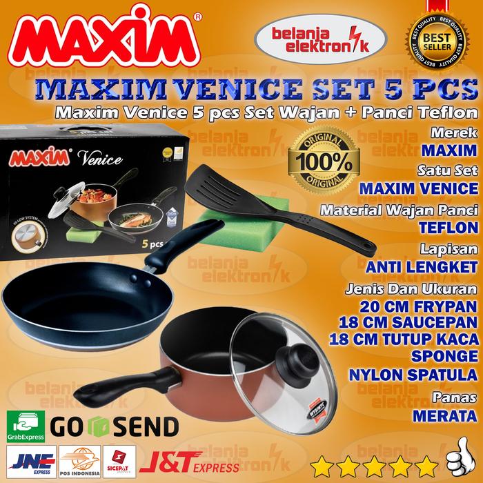 MAXIM VENICE 5 PCS SET WAJAN PENGGORENGAN PANCI TEFLON DAN SPATULA ANTI LENGKET