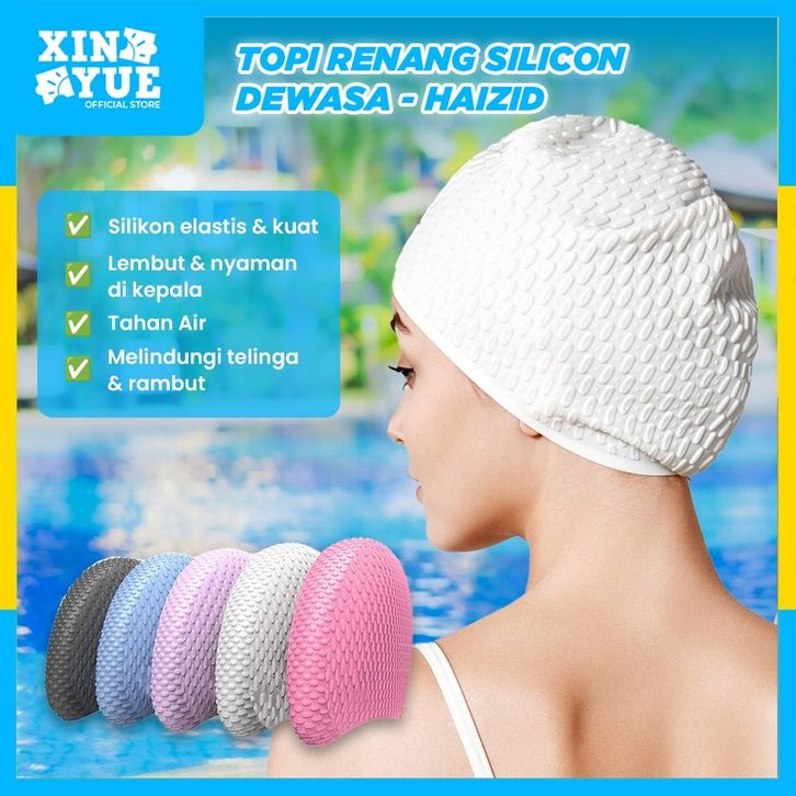 MURAH Xin Yue Topi Renang Dewasa Haizid Silikon Elastis Motif Tetesan Air Silicone Swim Cap Penutup Kepala odebmn