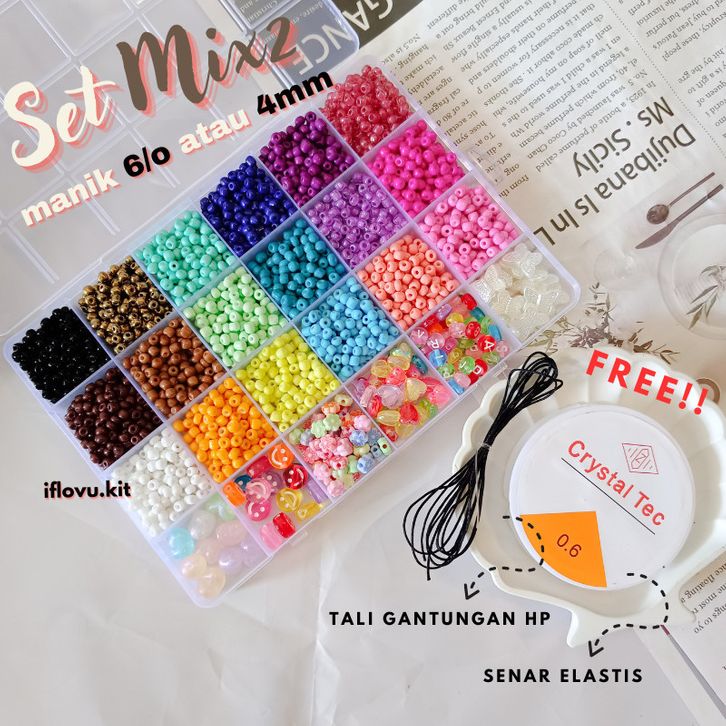 NEW Arrival Set Manik Manik DIY 6/0 4mm + Senar Elastis Beads Kit Bracelet Gelang Phone Strap Cincin ufers