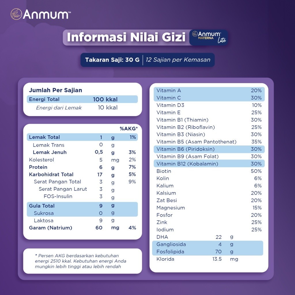 Anmum Materna Lite Susu Nutrisi Ibu Hamil Rendah Lemak Cokelat 2 x 360g