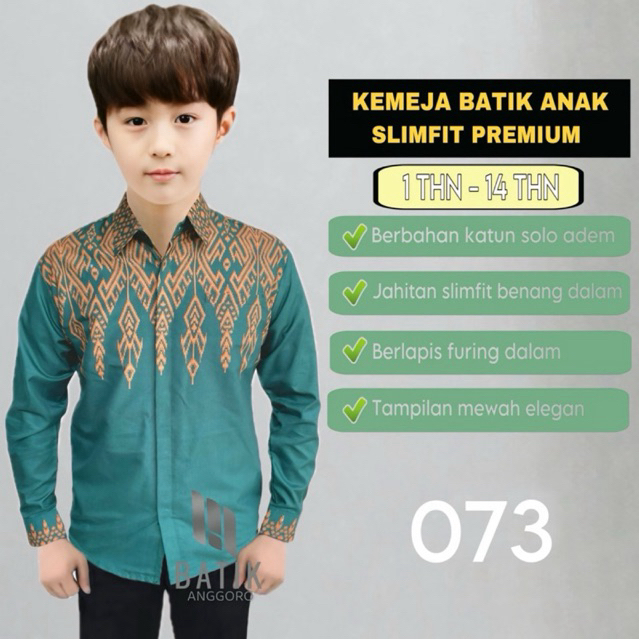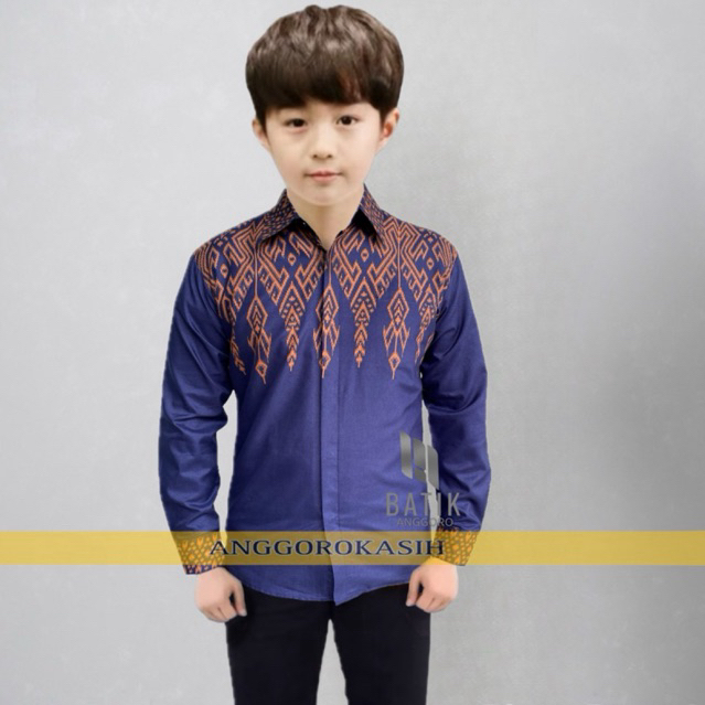Kemeja Anak Slimfit Muslim Motif Batik Lengan Panjang Pria Lapis Furing Dalam