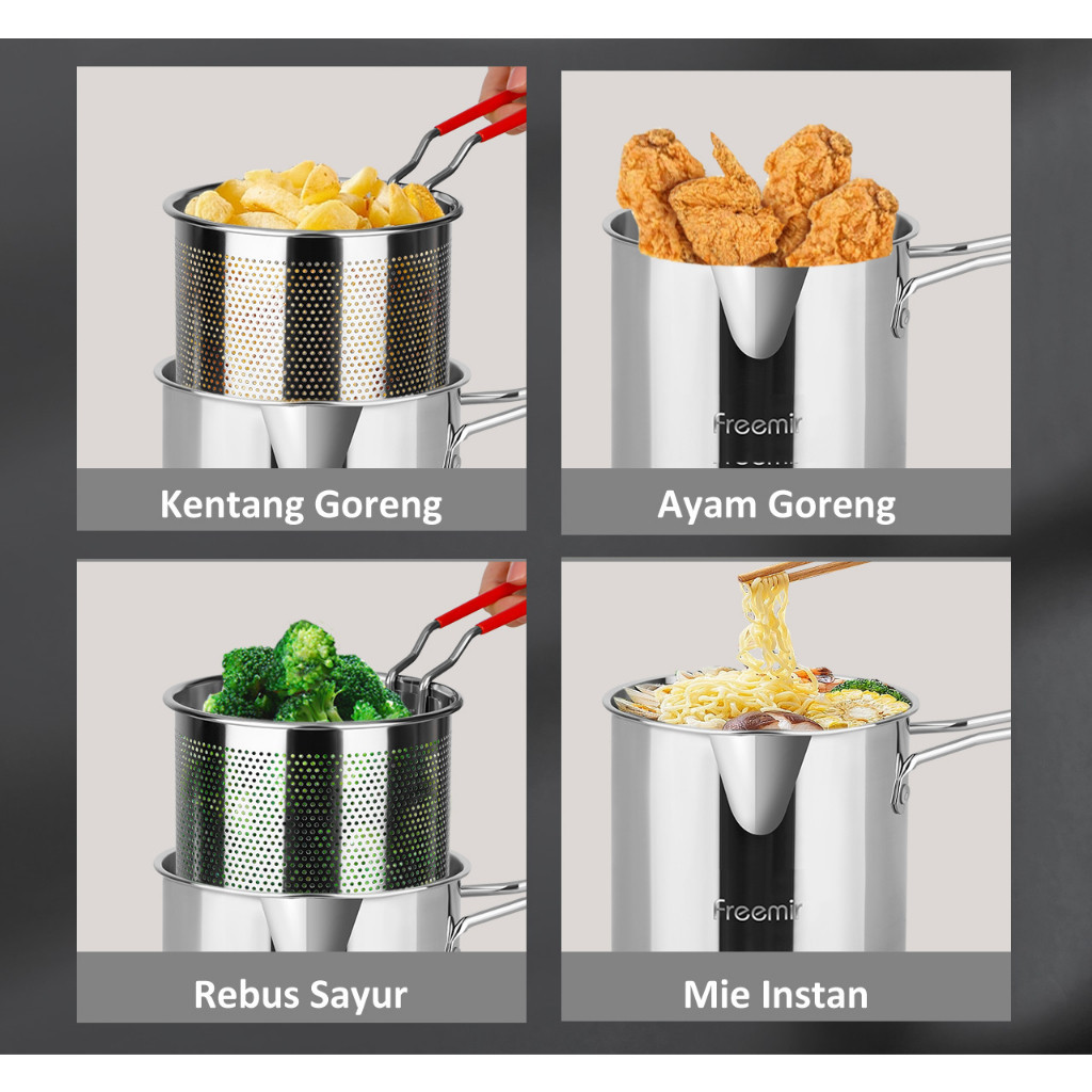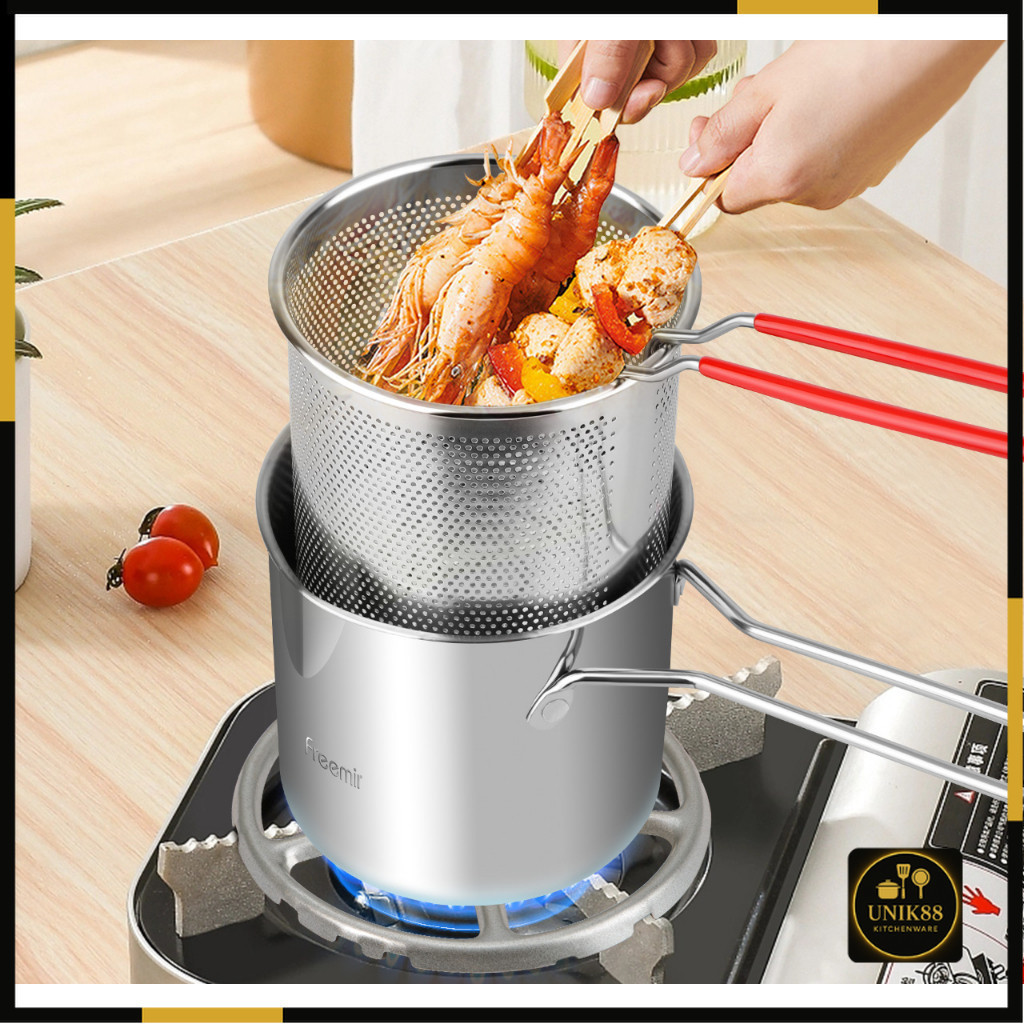 [UNIK88] Panci Multifungsi 5 in 1 Multi Deep Fryer Set Panci Penggorengan Rebus Stainless Steel Saringan Capitan Klip