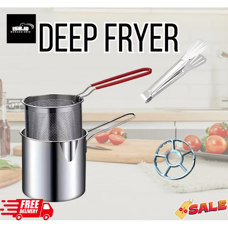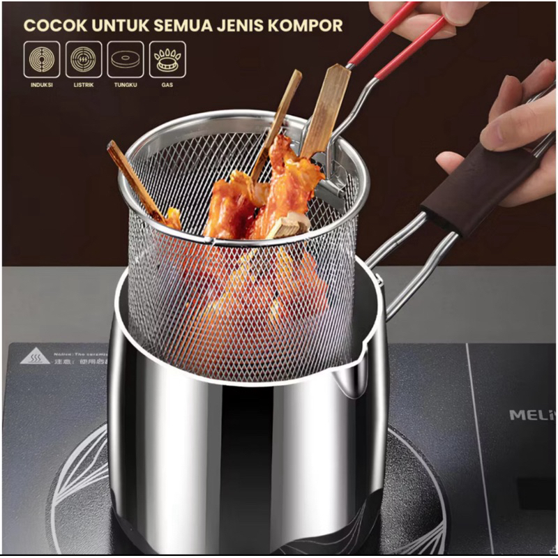 Panci Deep Fryer 4in1 - Panci Multi Fungsi Set Penggorengan Rebus - Panci Deep Fryer Stainless Steel - Panci Goreng Serb