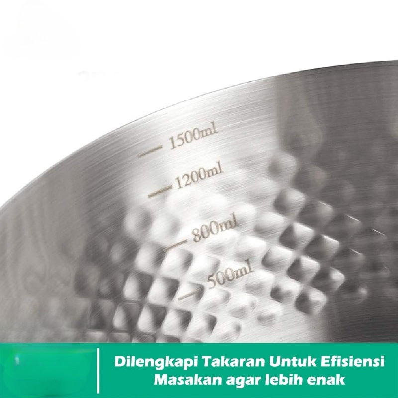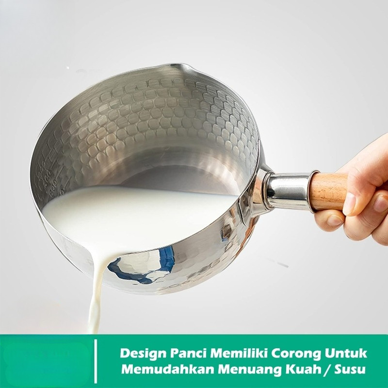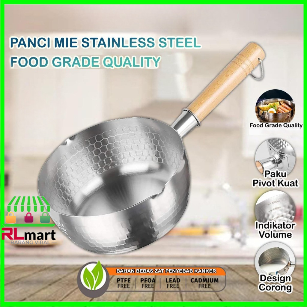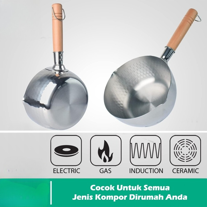 Panci Mie Stainless 20cm Food Grade Quality Gagang Kayu Asli