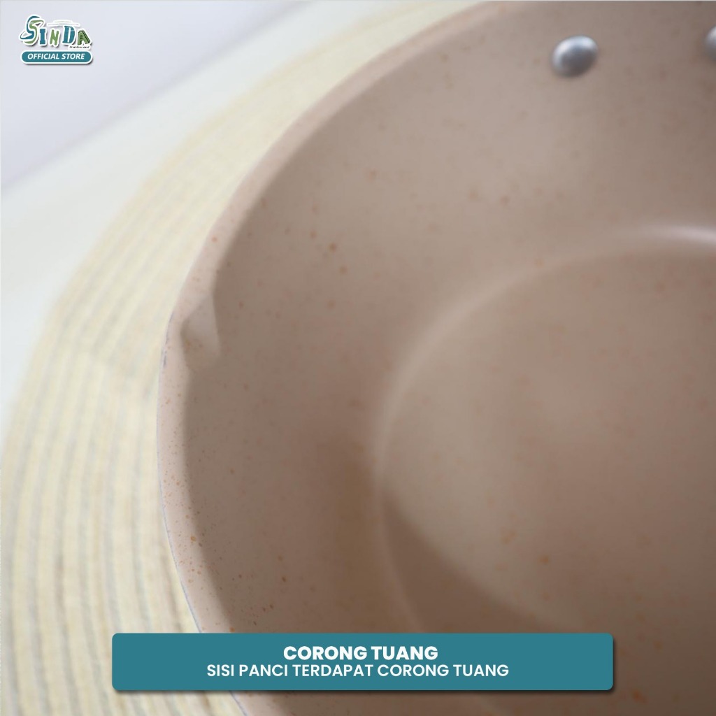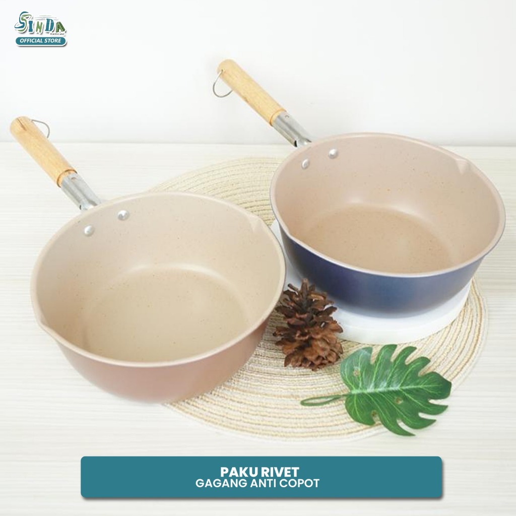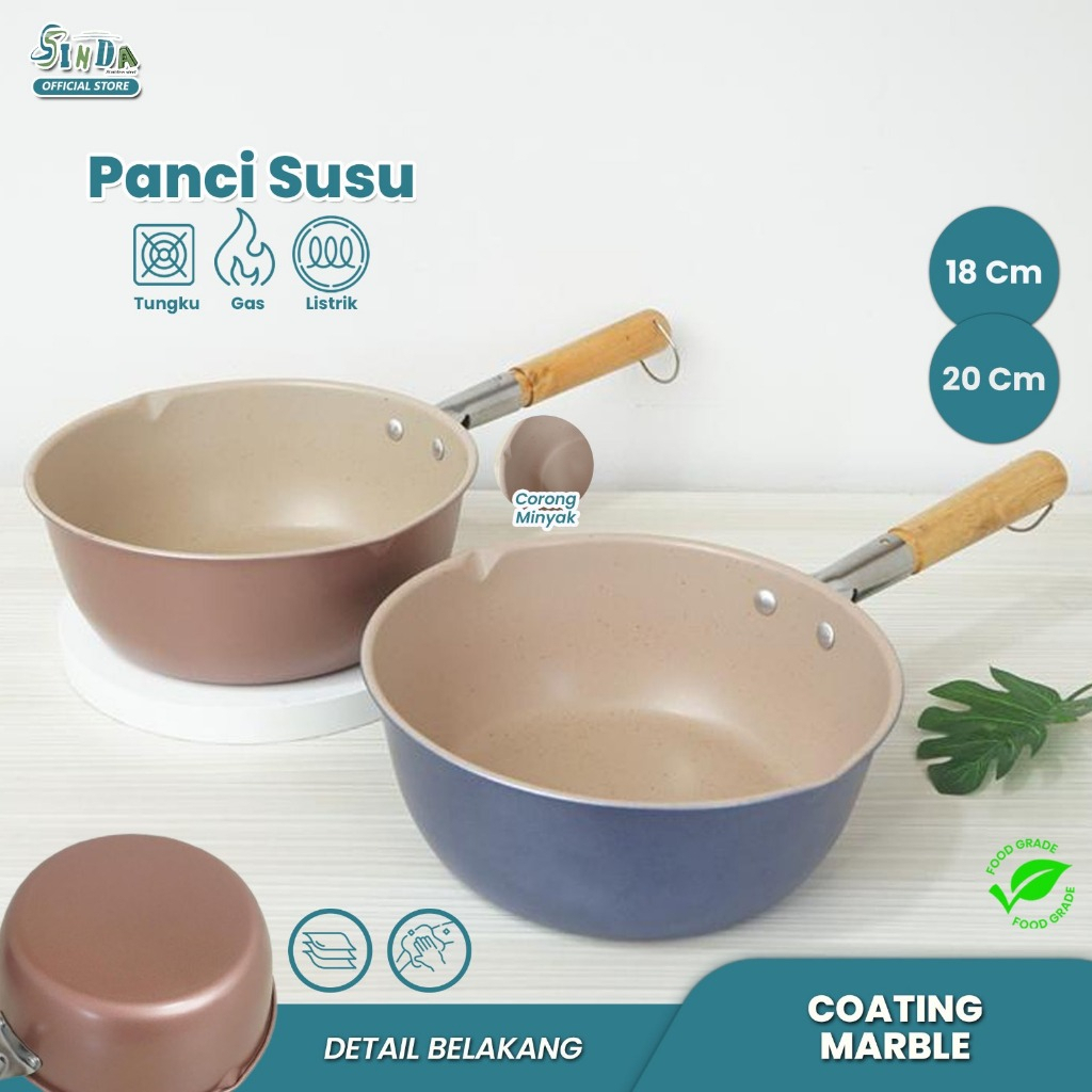 Sinda Panci Susu Anti lengket Panci Marble Penggorengan Masak Mie 18cm & 20cm Gagang Kayu
