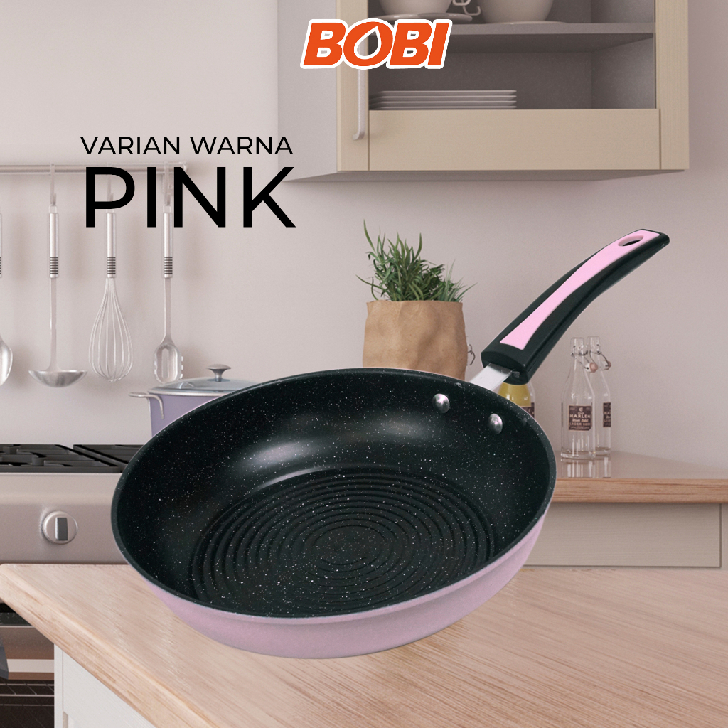 Teflon Panci Penggorengan 22 cm /// Wajan Penggorengan Anti lengket Wok Pan /// Teflon Praktis Bobi - Warna Random