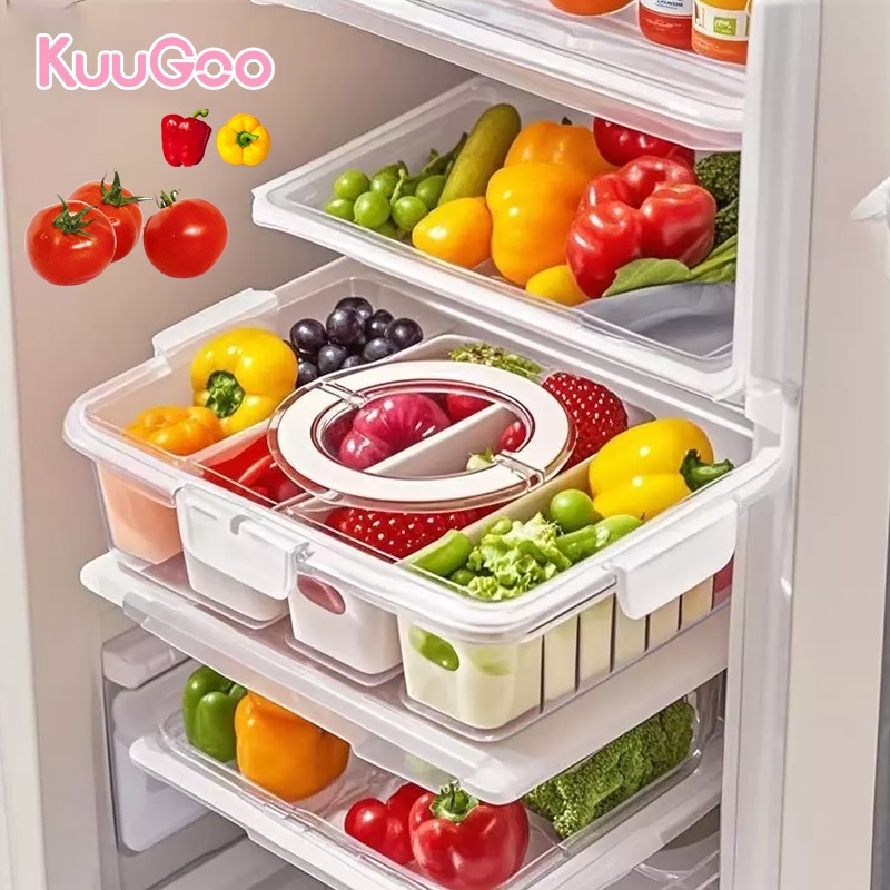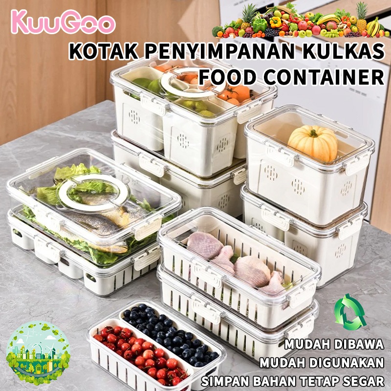 KuuGoo Set kotak penyimpanan segar food-grade Kotak penyimpanan kulkas rumah tangga Kotak makan siang tahan kelemba