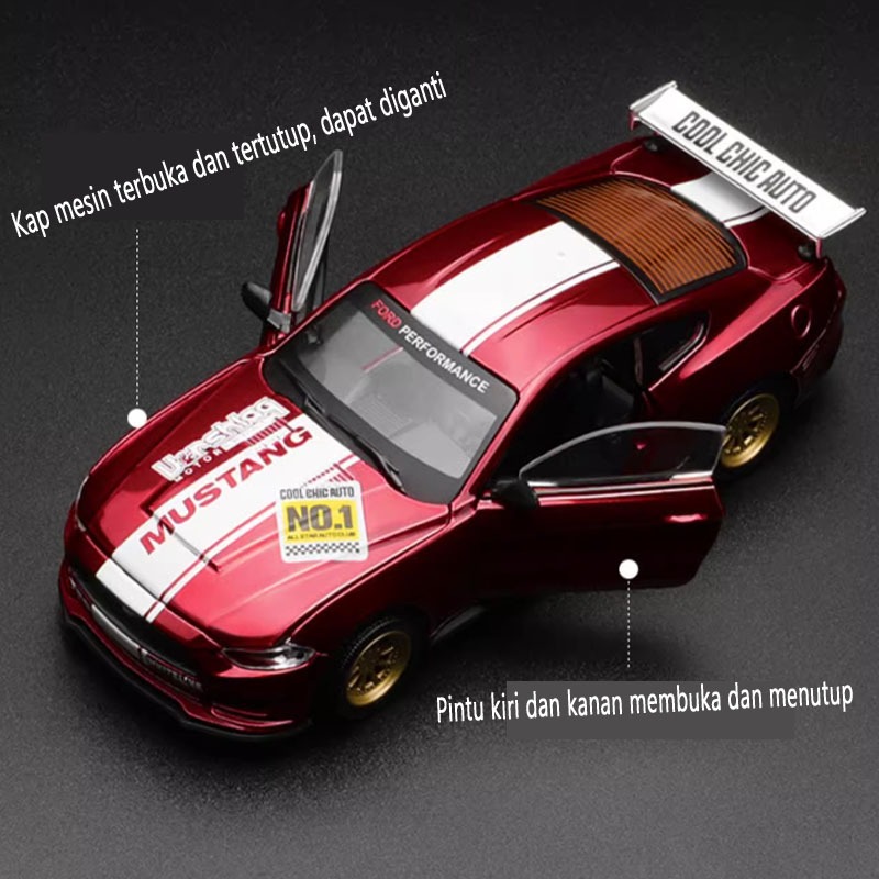 1:42 Diecast Miniatur Mobil Paduan Mobil Mainan Anak Mainan Anak Ford 2018 Mustang GT Model Balap Seri DIY