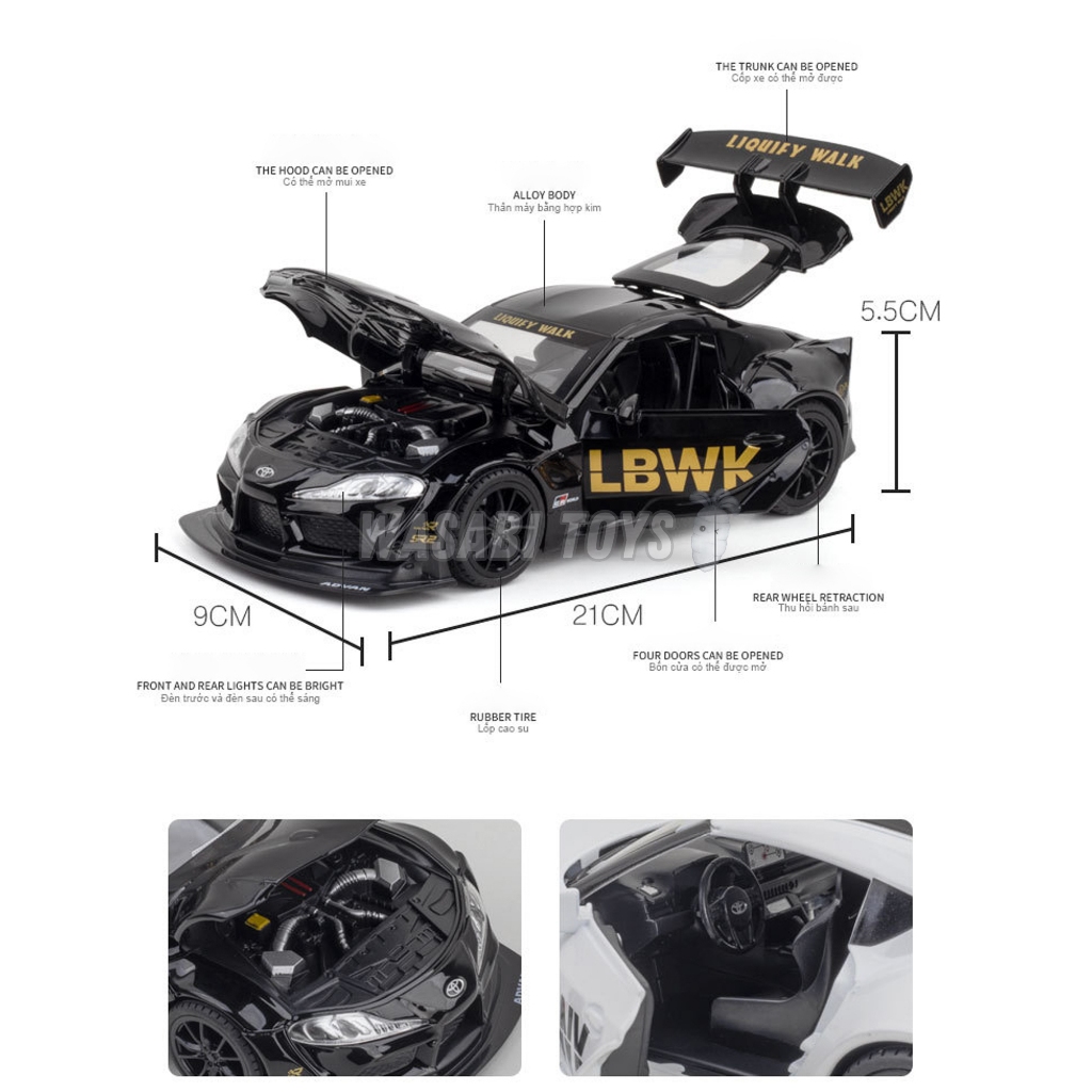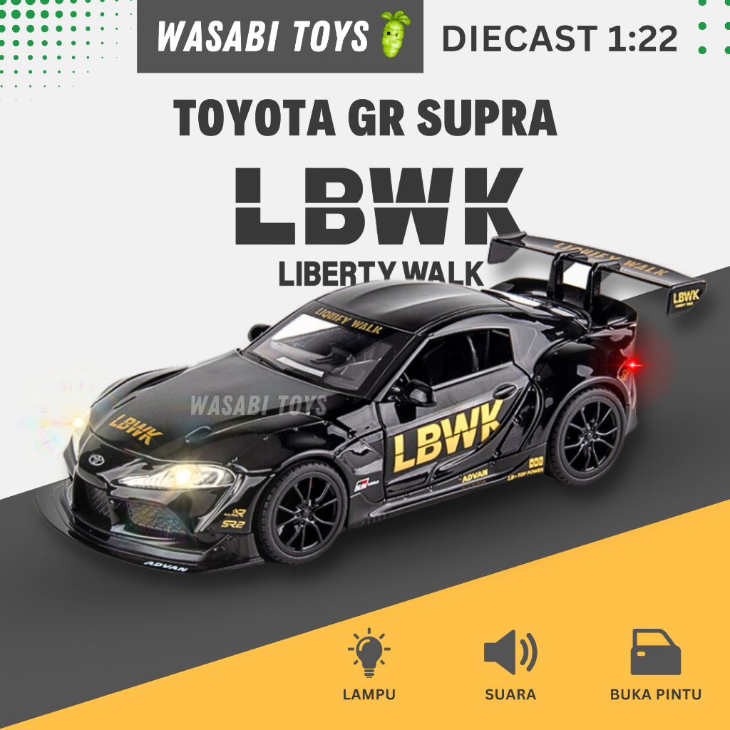 Diecast 1:22 Toyota GR Supra LBWK Liberty Walk (Fitur Lampu, Suara, Buka Pintu, Bagasi, Kap Mesin)
