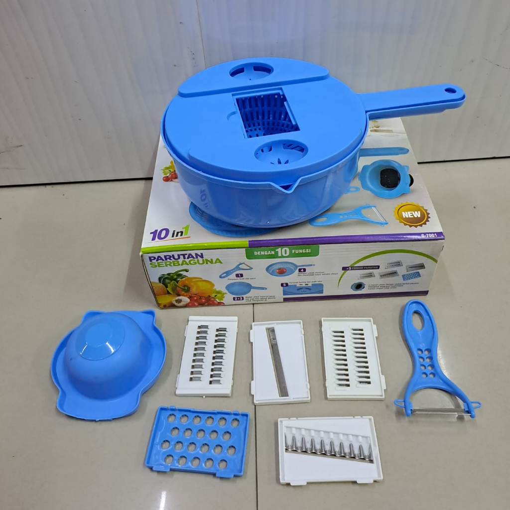 Parutan Serbaa 10 in 1 Baskom Alat Pemotong Pemarut Buah Sayur Kentang Saringan Slicer G-7001