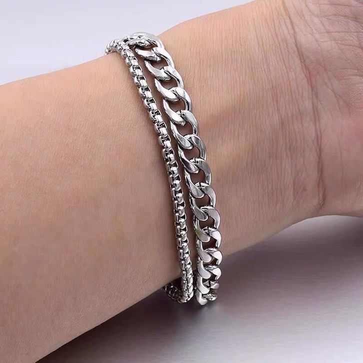 GELANG RANTAI GANDA DOUBLE LAYER WHEAT & ROLO CHAIN STAINLESS STEEL ANTI KARAT ELEGAN PRIA WANITA