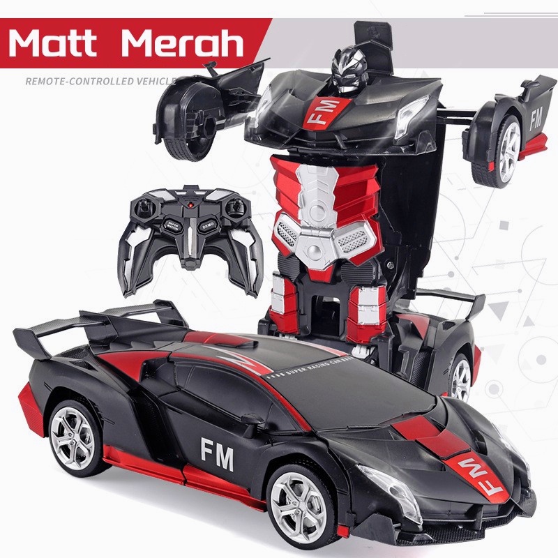 Mainan Mobil Robot Remote Control Anak RC TRANSFORMER Kontrol LED 1:18 PREMIUM Rechargeable Kokoh Kuat Hadiah Kado Ulan