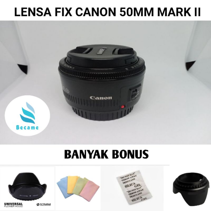Lensa Fix Canon 50mm F1.8 Mark II Mulus Banyak Bonus nya