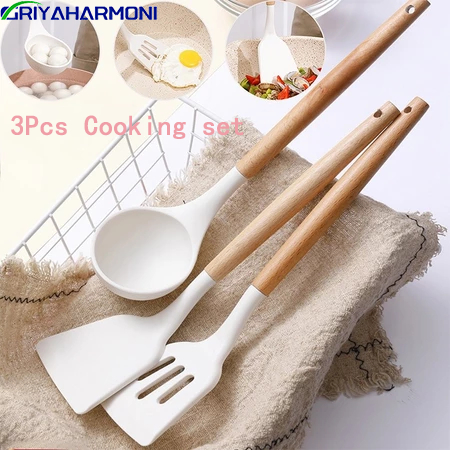 Bahan Silikon Kuat Alat Masak Tumis Goreng 3pcs Alat Masak Silicone Cooking Utensil Spatula Silicon Utensile Tahan Panas