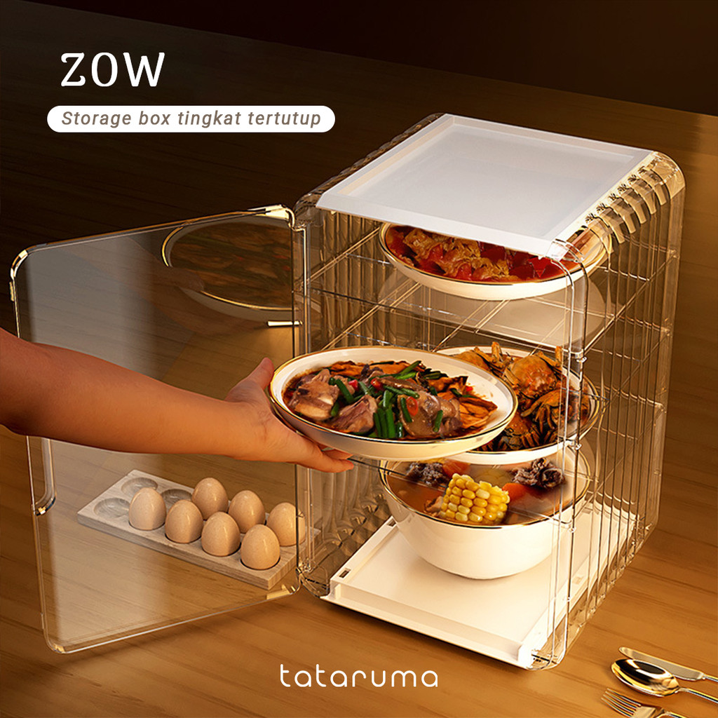 TATARUMA Zow - Food Storage Tertutup Tempat Sayuran Lauk Tingkat Susun Bebas Debu Hemat Tempat