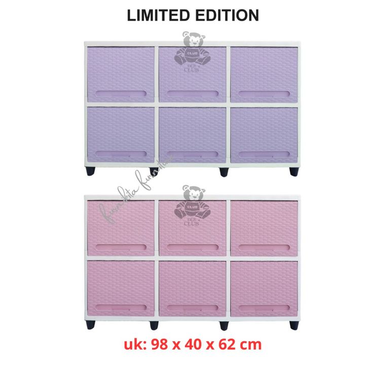 LEMARI PAKAIAN Plastik Triple Flip Susun 2 Pink dan Ungu