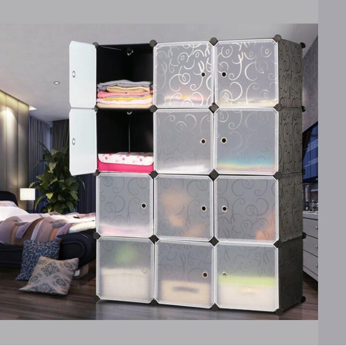 Lemari baju lemari plastik rak serbaguna susun lemari pakaian anak 12 pintu/susun/kotak
