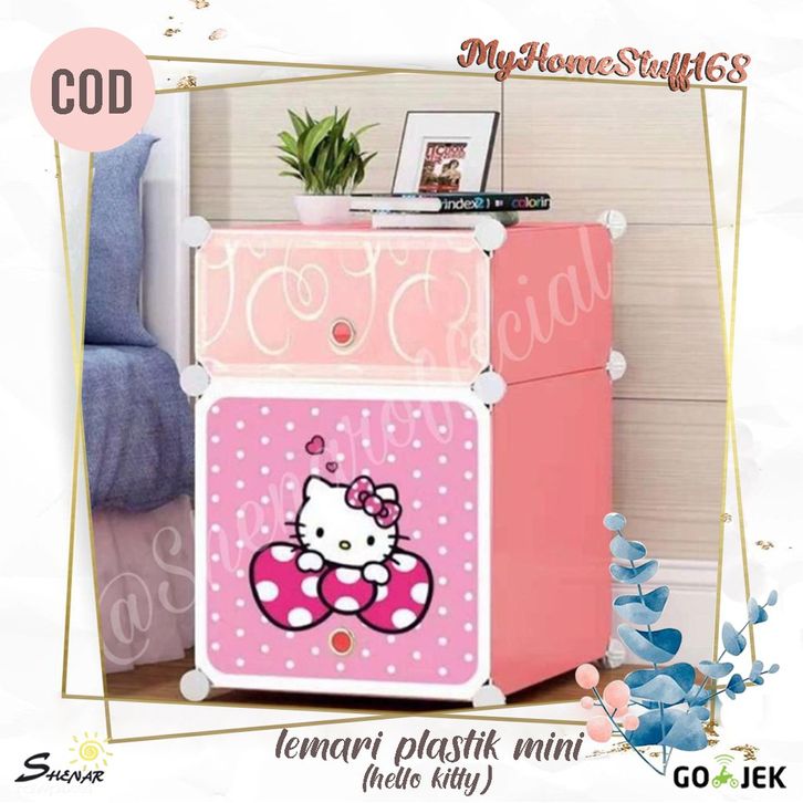 LEMARI SISI RANJANG PLASTIK / LEMARI PAKAIAN PORTABLE / LEMARI SERBA GUNA MINI HELLO KITTY,SHENAR