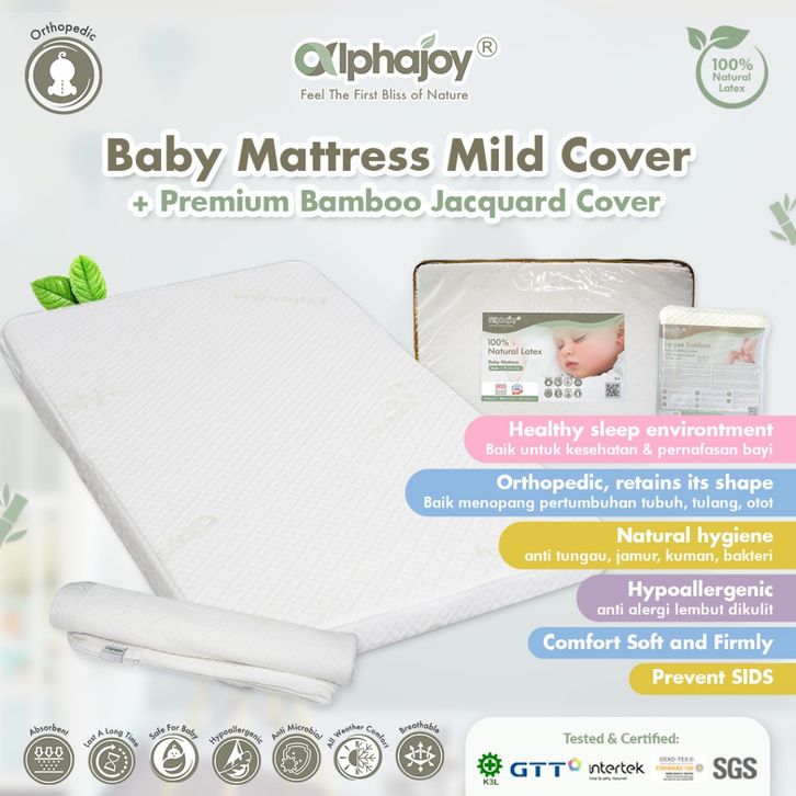 1 get 2 Kasur Bayi 95 x 65 Alphajoy MEDEE Natural Latex Bamboo Mattress Cover