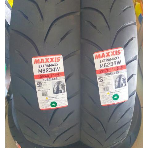 Paket ban maxxis extramaxx uk 120 / 70 -17 dan 150 / 60 -17 TUBLESS
